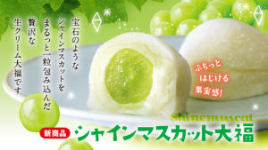 大人気のシャインマスカット大福が再登場! 宝石のようなシャインマスカットをまるっと一粒包み込んだ贅沢な生クリーム大福です(*’ω… [more]
