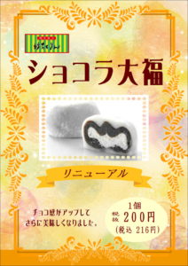 ショコラ大福10月よりチョコ感アップでさらに美味しくリニューアル!! 白餡に、ビターチョコレートとミルクチョコレートを大量に練りこみ、 まる… [more]